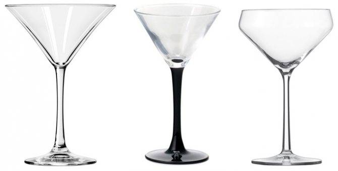 - коктейльный – бокал в виде конуса на высокой ножке. Используется для подачи коктейлей с Мартини и других охлажденных напитков без льда. Объем – 90-280 мл;