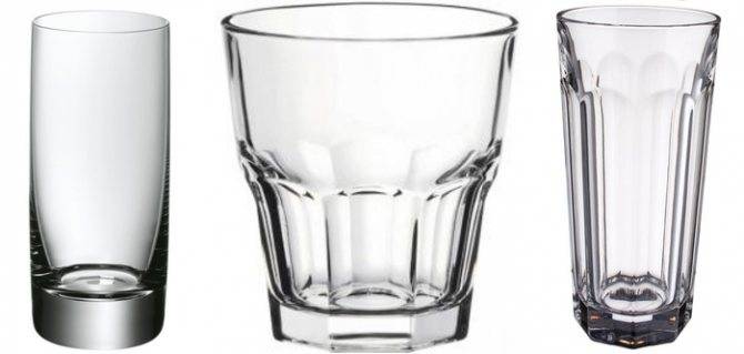 - тумблер – имеет ту же форму и назначение, что и хайболл. Объем – 200-320 мл;