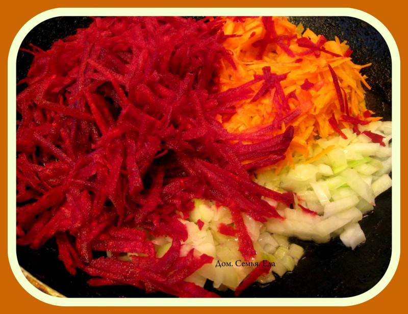 Вкусный борщ получится, если отдельно потушить морковку, лук и свеклу.