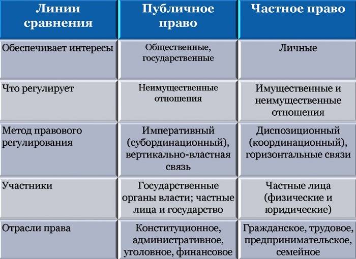 Публичное и частное право — понятие и отличие, признаки и примеры