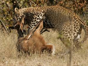 | Оставляет добычу на несколько дней | Оставляет остатки добычи на деревьях или в высоких травах |