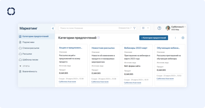 Инструменты маркетинга в ELMA365 CRM. База предпочтений покупателей.