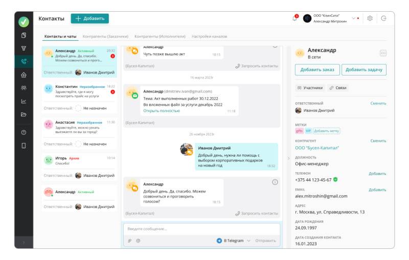 В системе CRM для каждого клиента есть персональная карточка, где можно найти всю деловую переписку и записи телефонных переговоров. А также можно ознакомиться с предыдущими заказами и индивидуальными предпочтениями заказчика.