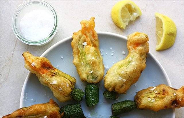 Красивые и крупные цветы цукини можно приготовить в кляре или хрустящей панировке.