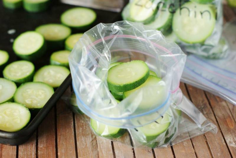 Чтобы сберечь полезные свойства цукини, его можно заморозить. Это позволит наслаждаться любимым лакомством даже в зимнее время года. Мыть под проточной водой цукини перед заморозкой не рекомендуется. Достаточно протереть плоды влажной тряпкой, высушить, затем мелко нарезать вдоль или поперек и поместить в специальные контейнеры или пакеты для заморозки овощей.
