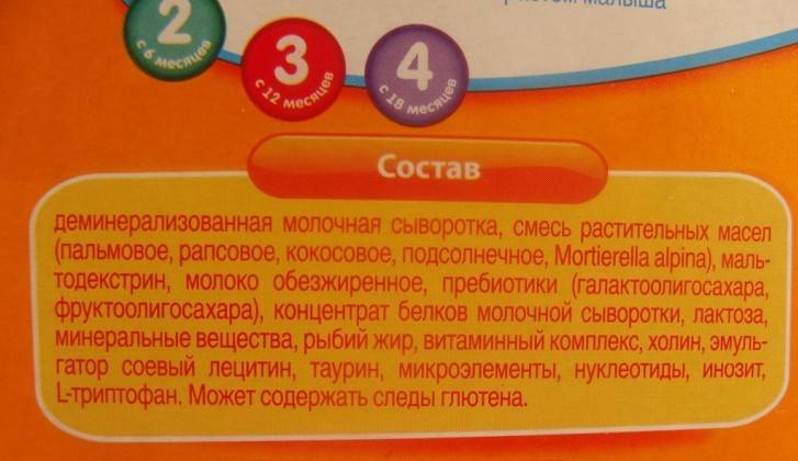 Жировая составляющая представлена многими растительными маслами: рапсовым, пальмовым, подсолнечным, кокосовым. Пальмовый эфир приближает смесь к грудному молоку, включает пальмитиновую кислоту, которая прибавляет крохе жизненных сил и энергии.