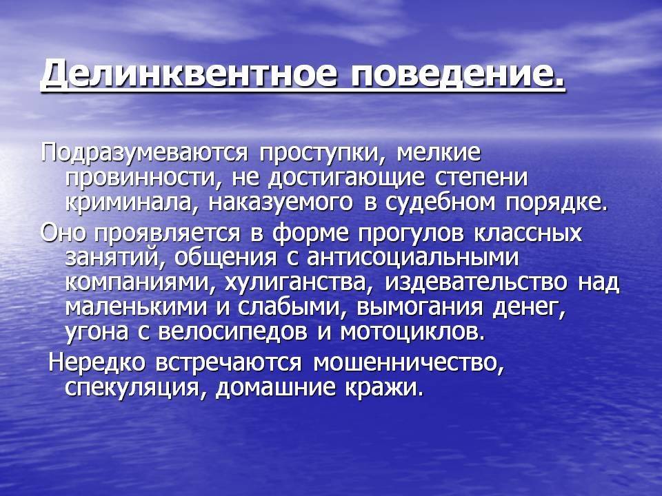 В отличие от девиантного поведения, делинквентное – это скорее проступок, чем осознанное преступление.