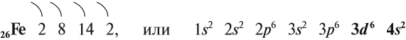 При образовании двухвалентного железа из атома железа удаляются два электрона (два 3s-электрона). Двухвалентное железо имеет шесть электронов в d-оболочке.