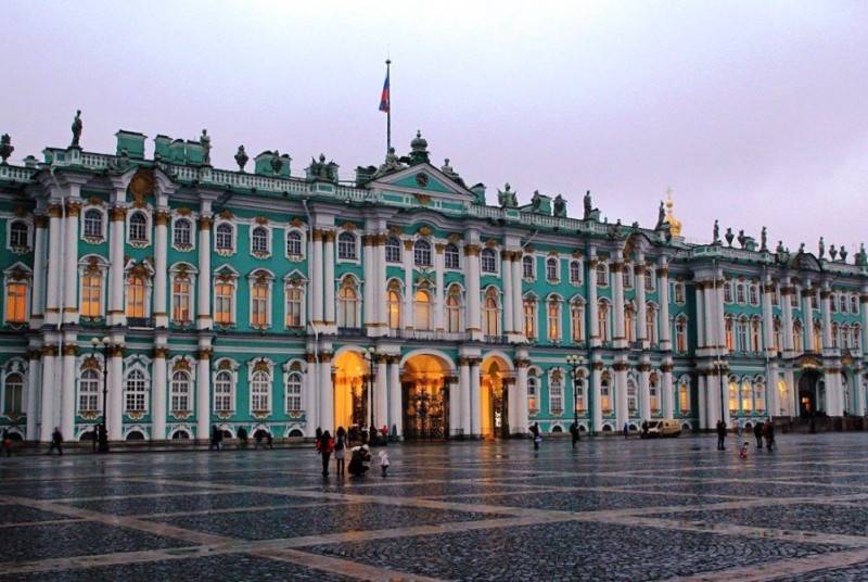 Зимний дворец — это и есть то самое всем известное здание на Дворцовой площади напротив Главного штаба. Бывшая зимняя резиденция царей.