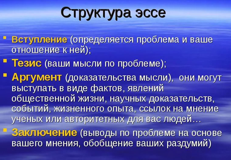 Но так как это свободное сочинение эссе, предполагает высказывание собственных идей, то правила написания эссе как таковые отсутствуют.