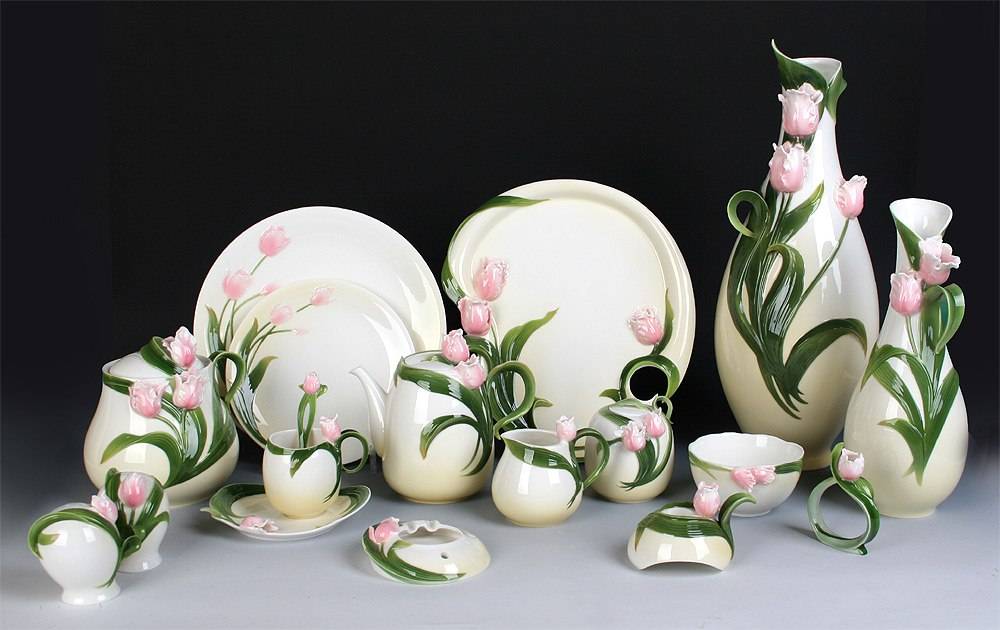- • из данного материала делают практически всю посуду: тарелки, чашки, ложки, кувшины, чайнички и даже статуэтки;
