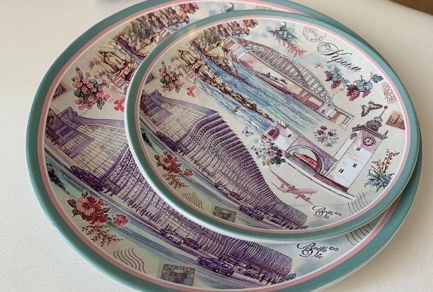 Посуда представлена в основном тарелками и чашками, которые можно без труда отыскать в каждом доме. Кроме того, такая посуда закупается для заведений общественного питания.