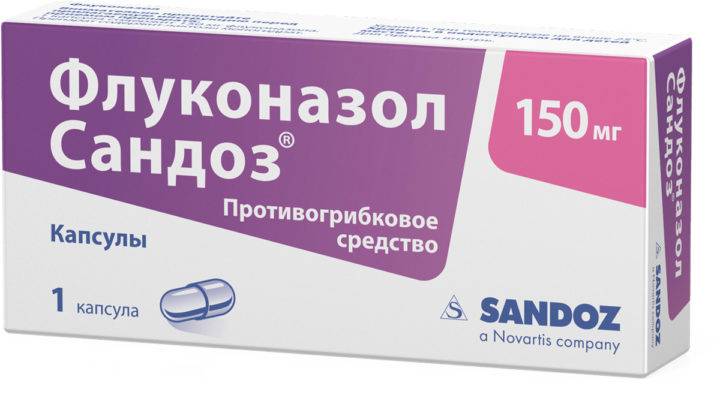 Как и Флуконазол-Тева, этот вариант медикамента имеет такие же показания, противопоказания и побочные реакции. Лекарство производится швейцарской фармацевтической компанией Сандоз. Каждая капсула содержит 150 мг ДВ.