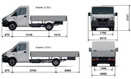 Схема и габаритные размеры грузовика Газель-Next