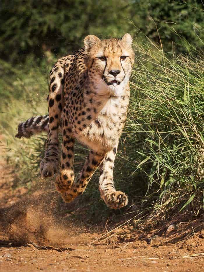 - Гепарды – короли скорости среди наземных животных. Самая высокая зарегистрированная скорость гепарда составляет 61 милю в час (98 км / ч), но, по некоторым оценкам, они развивают скорость до 76 миль в час (122 км / ч)! Они тоже быстрые, способны разогнаться до 0-60 миль в час примерно за 3 секунды.