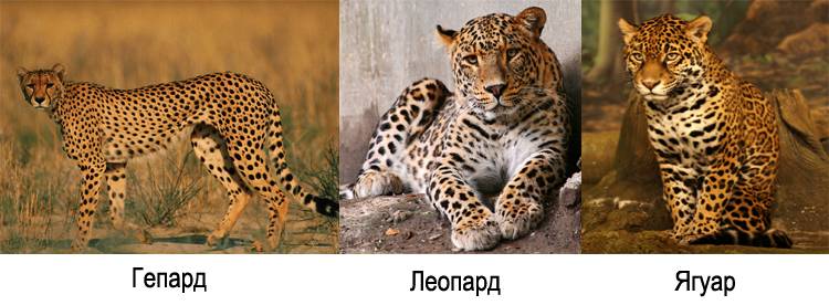 Гепарды, леопарды и ягуары имеют схожие методы охоты и питания, однако существуют и некоторые различия.