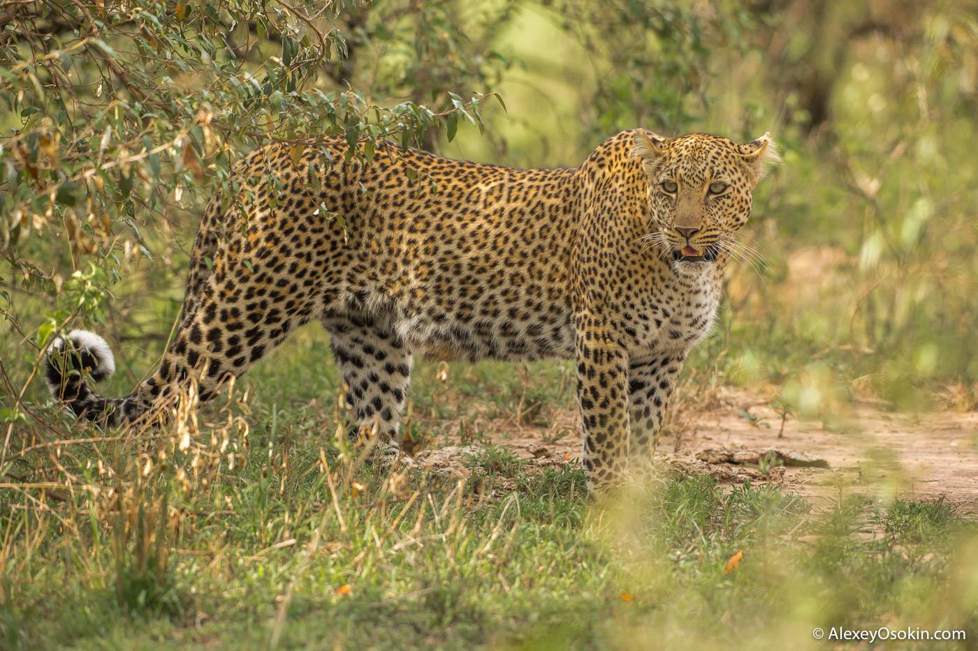 - Леопард имеет характерную окраску шкуры с черными пятнами, которые помогают ему скрываться в траве или лесу.