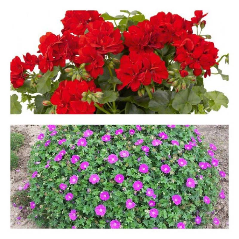 - Цветки герани встречаются в различных оттенках, кроме алого. Пеларгония никогда не бывает синего цвета.