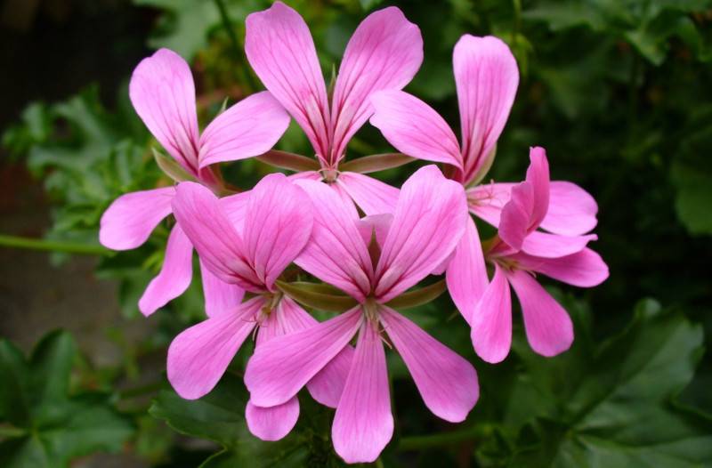 - Пеларгония душистая, не стоит путать ее геранью ароматной, относится к разновидности кустарников, высота достигает 30 сантиметров. Зонтики состоят из 5-10 цветков. Какой цветок герани душистой? Окрас цветов розовый или темно-розовый, белый. Цветет летом. Растения издает ароматы похожие на корицу, лимон, яблоко. Выведено более 150 разновидностей, издающих необычные запахи. Чаще всего листья пахучей герани используют при долговременном хранении вещей, для достижения приятного запаха. Часто выращивается в садах. В промышленных масштабах используют для получения эфирного масла.
