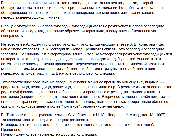 - Ну и стоит выделить, что гололед редко долго держится на поверхности. Как правило, после прекращения дождя он проходит. Конечно, это зависит и от климатических условий, в некоторых местах гололед может сохраняться от 4 до 6 дней и иметь корку толщиной в несколько сантиметров. Гололедица же сохраняется очень долго (минимум неделю).