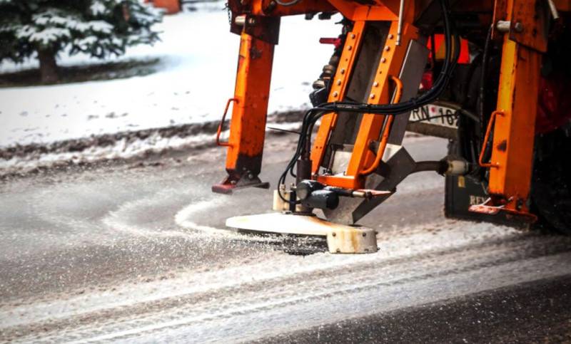 Поверхности дороги посыпают солью, песком или обрабатывают реагентами