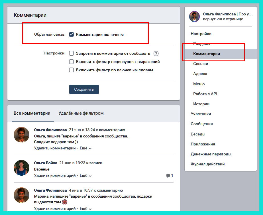 Комментарии в паблике могут быть включенные или отключенные. Это правило действует одновременно для всех разделов паблика.