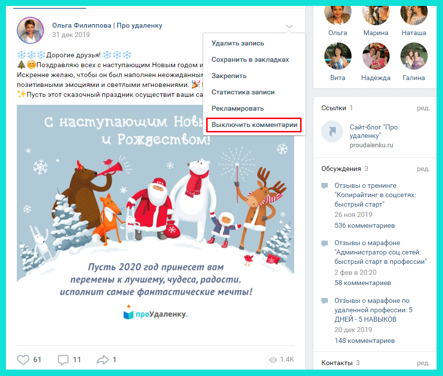 Если комментарии в паблике включены, но мы хотим отключить их для отдельной записи – такая возможность есть в настройках записи.