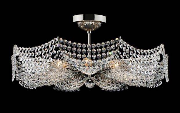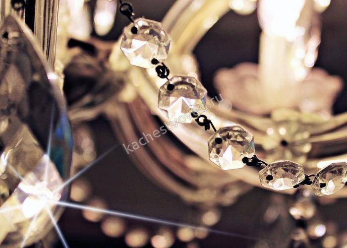 Исторически люстры изготавливают из богемского (чешского) хрусталя – его делают добавляя к стеклу не оксид свинца, а кальциево-калиевые соединения, медь, марганец и даже золото. Для того, чтобы убедиться в подлинности, следует первым делом осмотреть грани подвесок: они должны быть идеально гладкими, без трещин и сколов. Затем включите свет: стекло ни за что не даст вам того спектра оттенков, который тут же выдаст хрусталь. Наконец, можно постучать по подвескам люстры: как и в случае с бокалами, хрусталь мелодично зазвенит