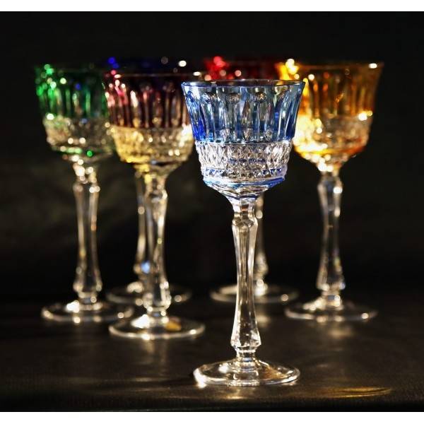 Менее известен цветной хрусталь, изделия из цветного хрусталя обладают всеми качествами хрусталя. Что бы дать хрусталю цвет на стадии изготовления добавляют различные окиси металлов, дающие красивые цвета -чистый синий цвет, розовый, зеленый, фиолетовый.
