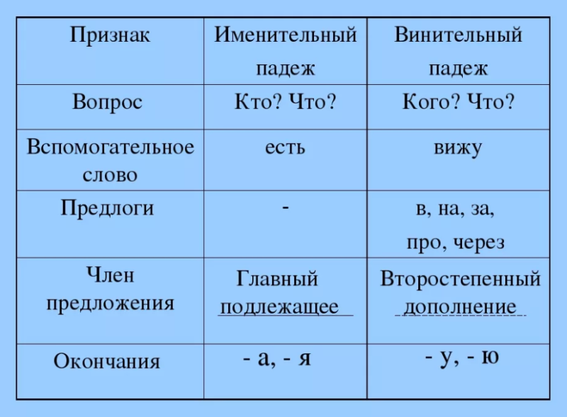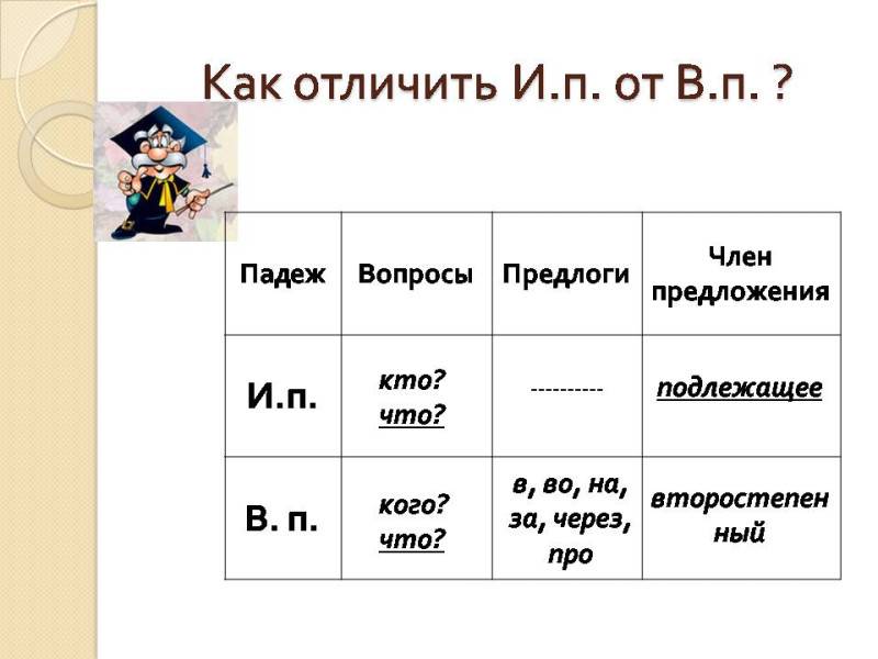 Как различить винительный и именительный падеж? Действенное школьное правило: постановка падежного вопроса: