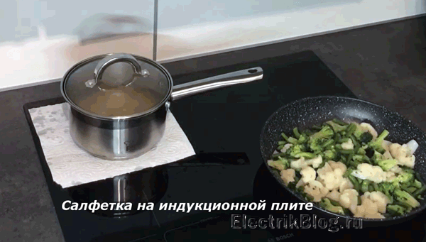 Они заранее подкладывают бумажные салфетки под дно кастрюль, из которых может попасть на стеклокерамику нагреваемая при кипячении пища.