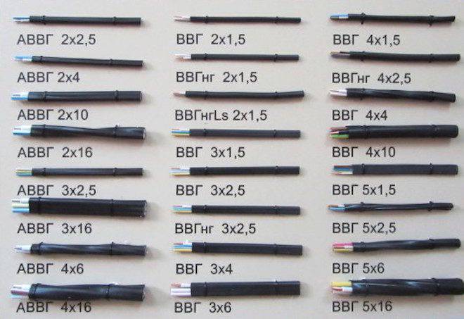 В конце цифрами указывается количество и размер в поперечнике проводников. Например, маркировка АВВГ означает, что шнур содержит алюминиевые проводники, с внутренней и наружной изоляцией из ПВХ, без брони и пожароустойчив. Цифры 3х2,5 указывают на три проводника 2,5 квадратных миллиметра в поперечнике.