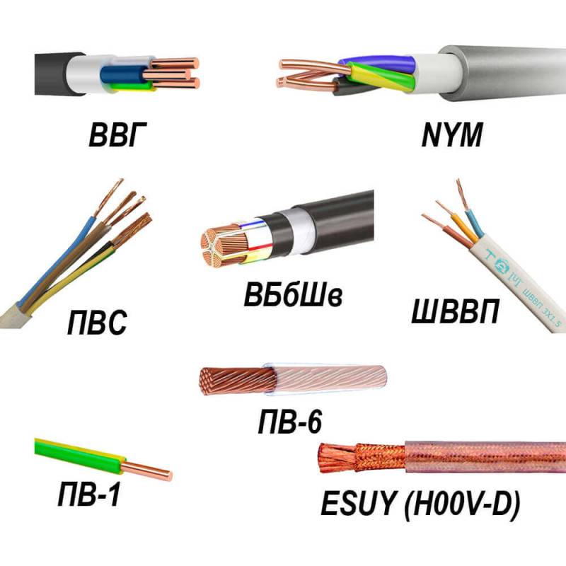 Провода, как входящие в состав кабеля, так используемые самостоятельно различаются материалом токопроводящей жилы: медь или алюминий.