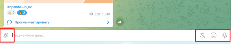 Дополнительные возможности: прикрепление файлов, использование эмодзи, запись голосового сообщения (находится в поле для публикации постов).