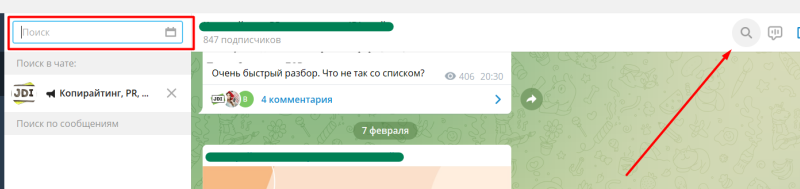 Иконка в виде лупы открывает возможность поиска по заданному слову. Это экономит время, если вы намерены найти человека или обсуждение. Пост можно сделать заметным, если прикрепить его сверху над всеми сообщениями.