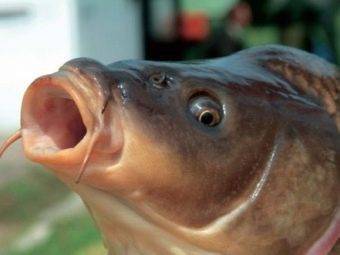 Молодого сазана часто путают с карасём – он гораздо толще и больше карася и не настолько высок в спине. Также отличительное отличительная особенность карпа – 4 толстых небольших усика на губах желтоватого оттенка.