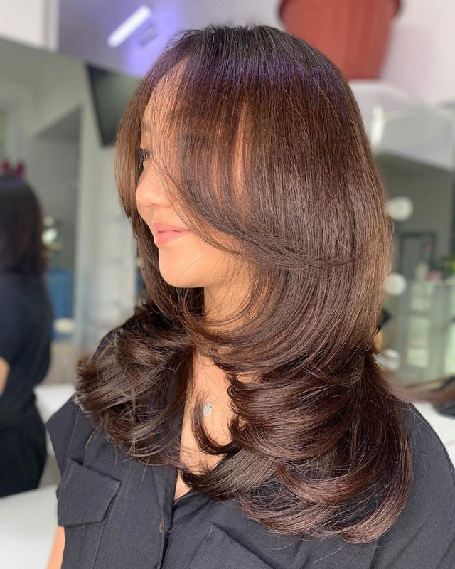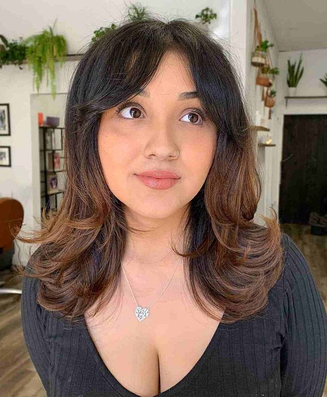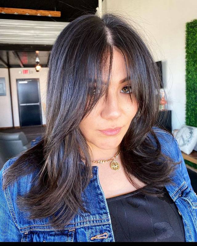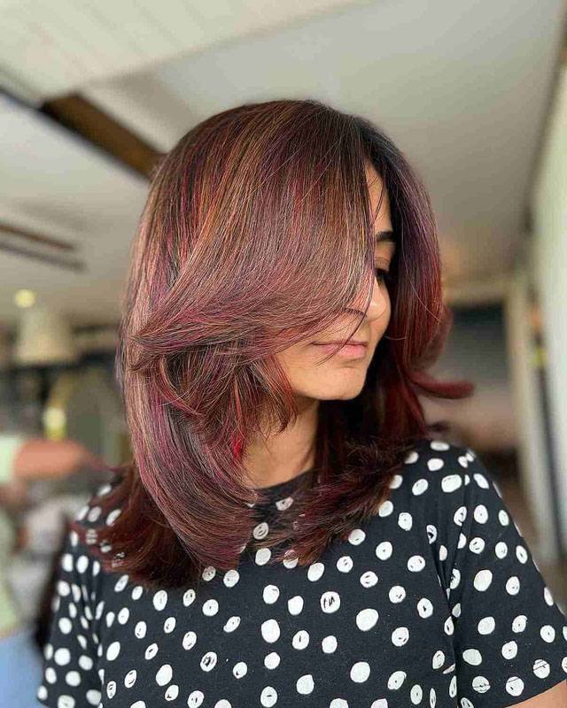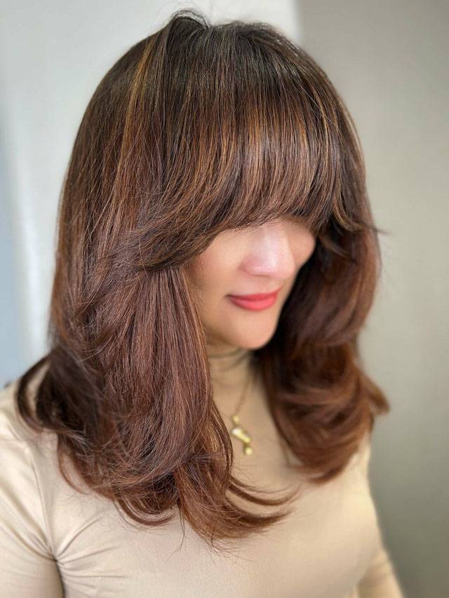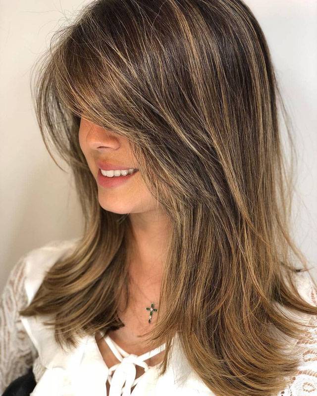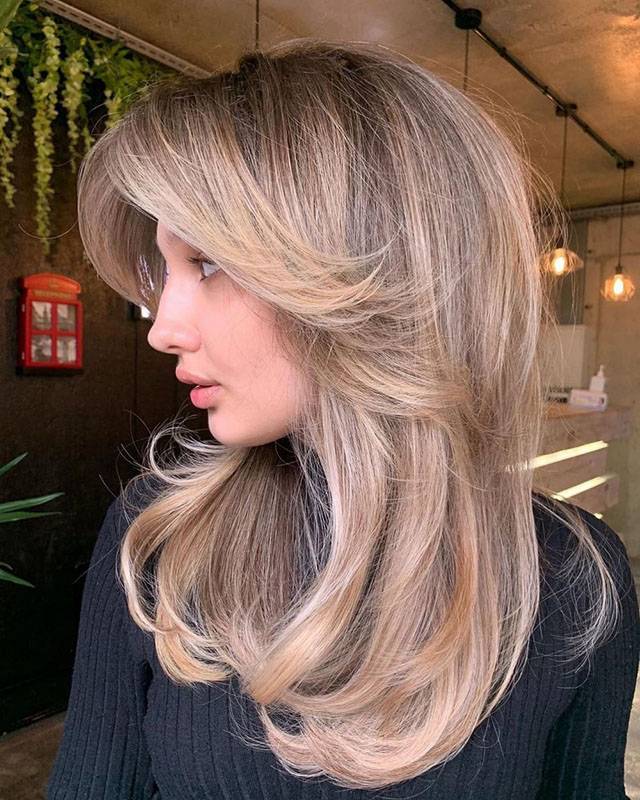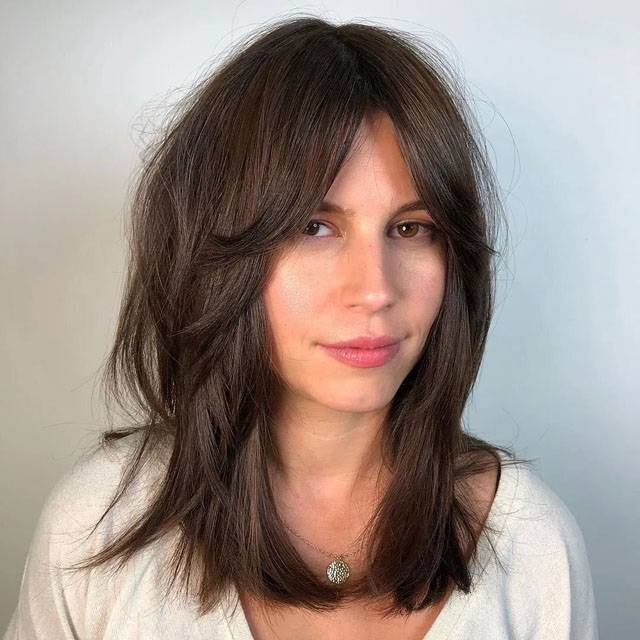 Каскад на средние волосы с челкой