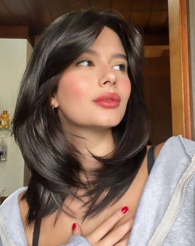 Объемный, многослойный каскад на средние волосы выбирают женщины всех возрастов. Он идет молодым девушкам и женщинам старше сорока. На макушке создаются короткие пряди, которые плавно переходят в более длинные. Подобранная правильно форма, может кардинально поменять внешность, делает образ очень женственным.
