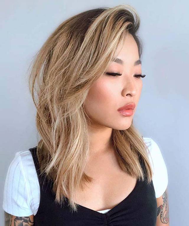 Асимметричный предполагает наличие ступеней на противоположных сторонах и создает яркий образ. Но чтобы хорошо выглядеть, требуется ежедневная укладка. Если нет такой возможности, то от асимметрии лучше отказаться.