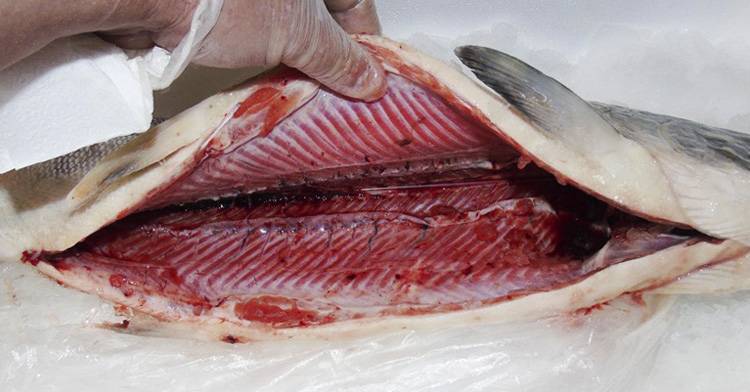 Шкура должна быть целой, без потертостей или царапин. Также обратите внимание на глаза рыбы: они должны быть ясными, выпуклыми и блестящими, без помутнения или выпадения.