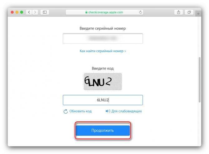 В открывшемся окне ввести серийный номер Айфона — выше было рассказано, где его найти.