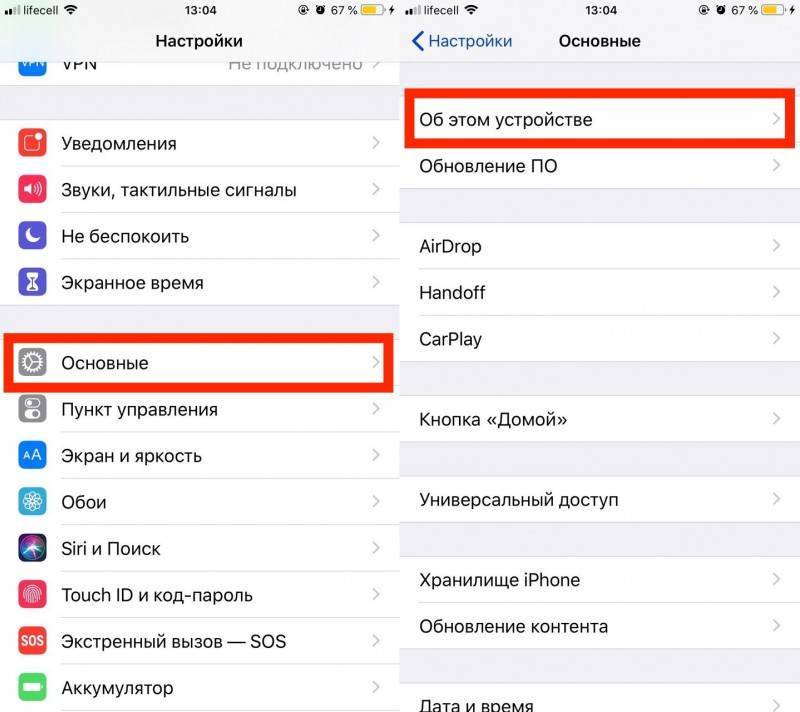 - В настройках ищем обязательные пункты – серийный номер и модель телефона. На экране находим значок с надписью — «Настройки», нажимаем далее жмем — «Основные» — «Об этом устройстве». Не нашли модели и серийного номера – 100% подделка.