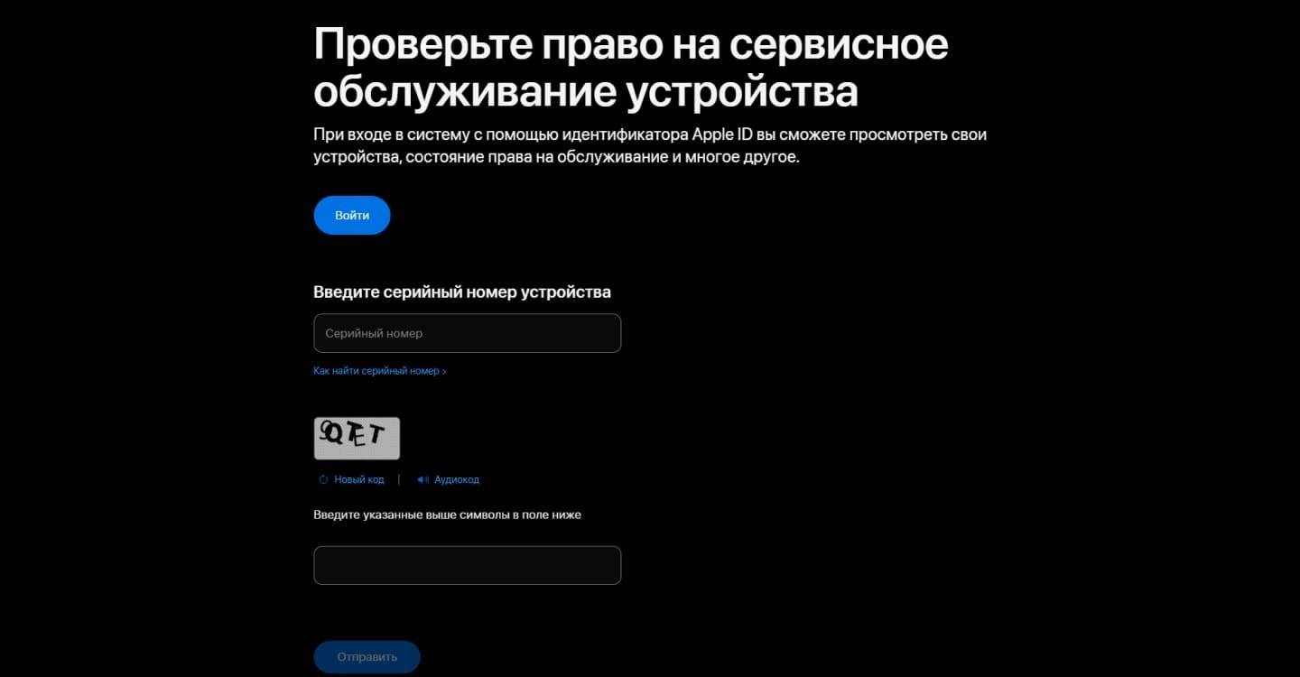Проверка Айфона по серийному номеру на официальном сайте