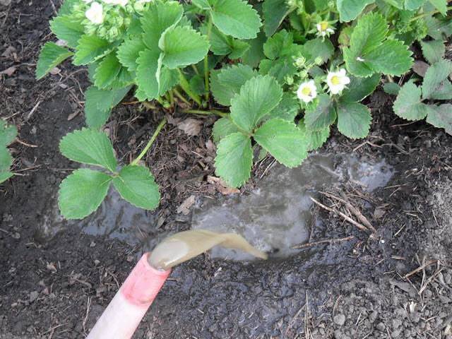 Грядку под клубнику готовят предварительно, желательно за 1-1,5 месяца до предполагаемой посадки. Вносят органические удобрения (перегной, компост 5-6 кг/м.кв), калийную соль (10-15 гр/м.кв) и суперфосфат (15-20 гр/м.кв) при подготовке осенью. При весенней высадке в почву желательно внести аммиачную селитру (1 ст.л./м2). Землю перекапывают, рыхлят, оставляют до усадки.