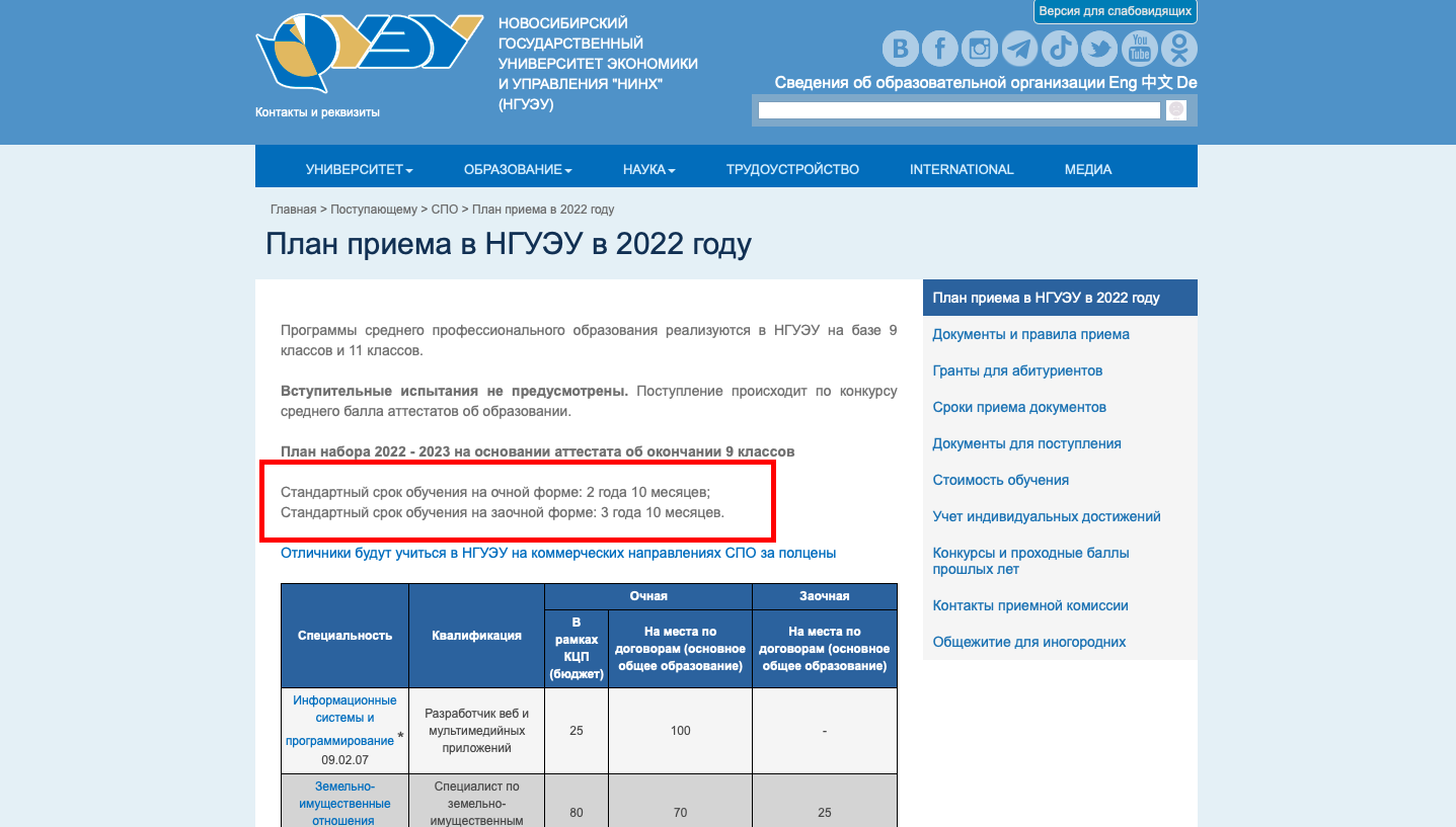 Проверить, сколько лет вы потратите на учебу, можно на сайте приемной комиссии интересующего вас колледжа: