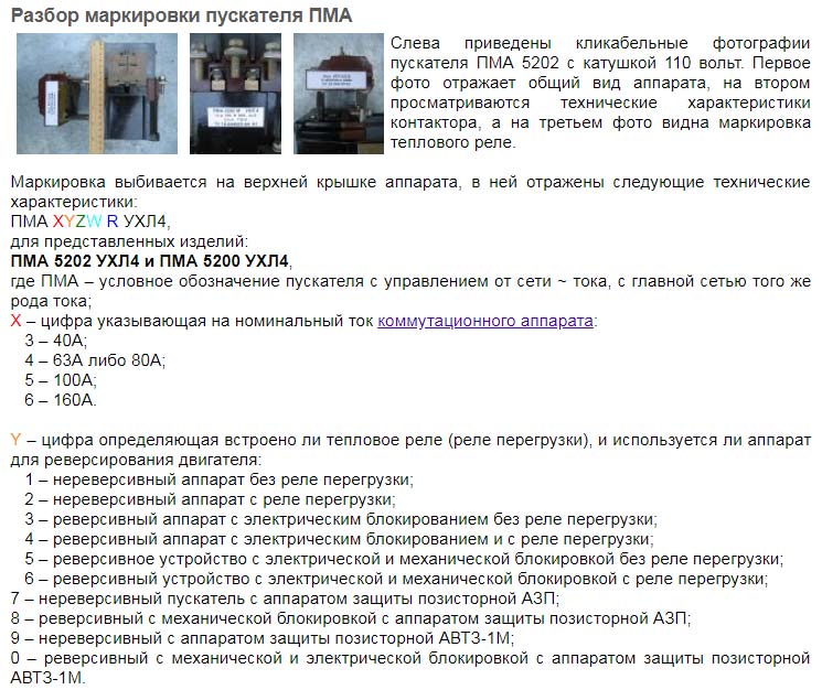- ПМА. Этот пускатель предназначен для асинхронных трёхфазовых электродвигателей переменного тока.