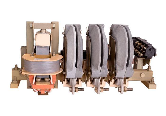 Замыкание контактов силовой цепи осуществляется контактором – аппаратом, в котором сцеплённая с якорем электромагнитного реле группа контактных пластин замыкается на неподвижные контакты, соединённые с входными и выходными клеммами подключения питающего напряжения сети и линий нагрузки.