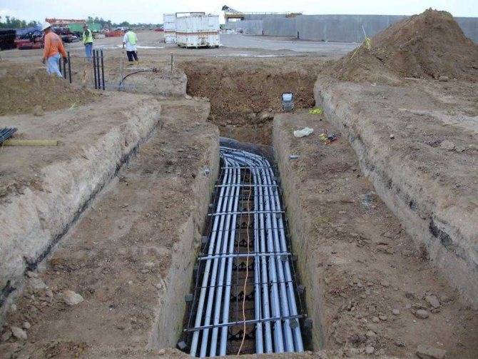 - В грунте и каналах при условии воздействия больших усилий на растяжение. Броню образуют стальные прутья проволоки, покрытые цинковым слоем и покровом из ПВХ-пластиката.