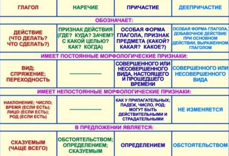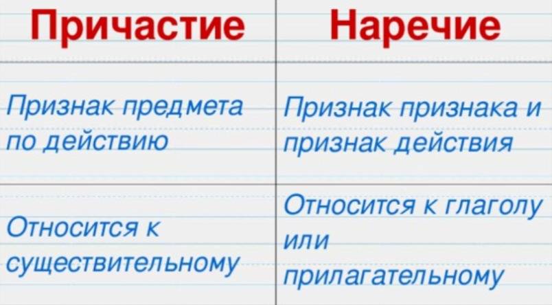 Перечислим основные моменты, помогающие выявить отличие наречия от причастия: