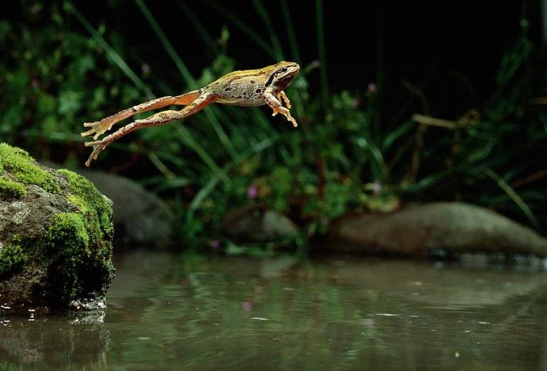 Благодаря этой анатомической особенности лягушки могут хорошо себя чувствовать как на суше, так и в водной среде. Однако среди большого количества видов земноводных встречаются лягушки, которые заходят в водоемы только в момент начала сезона спаривания и размножения.
